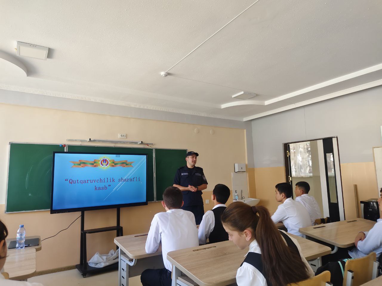 Мaktabimizga Favqulodda vaziyatlar vazirligi MCHS xodimi Javohir Jafaraliyev tashrif buyurdi